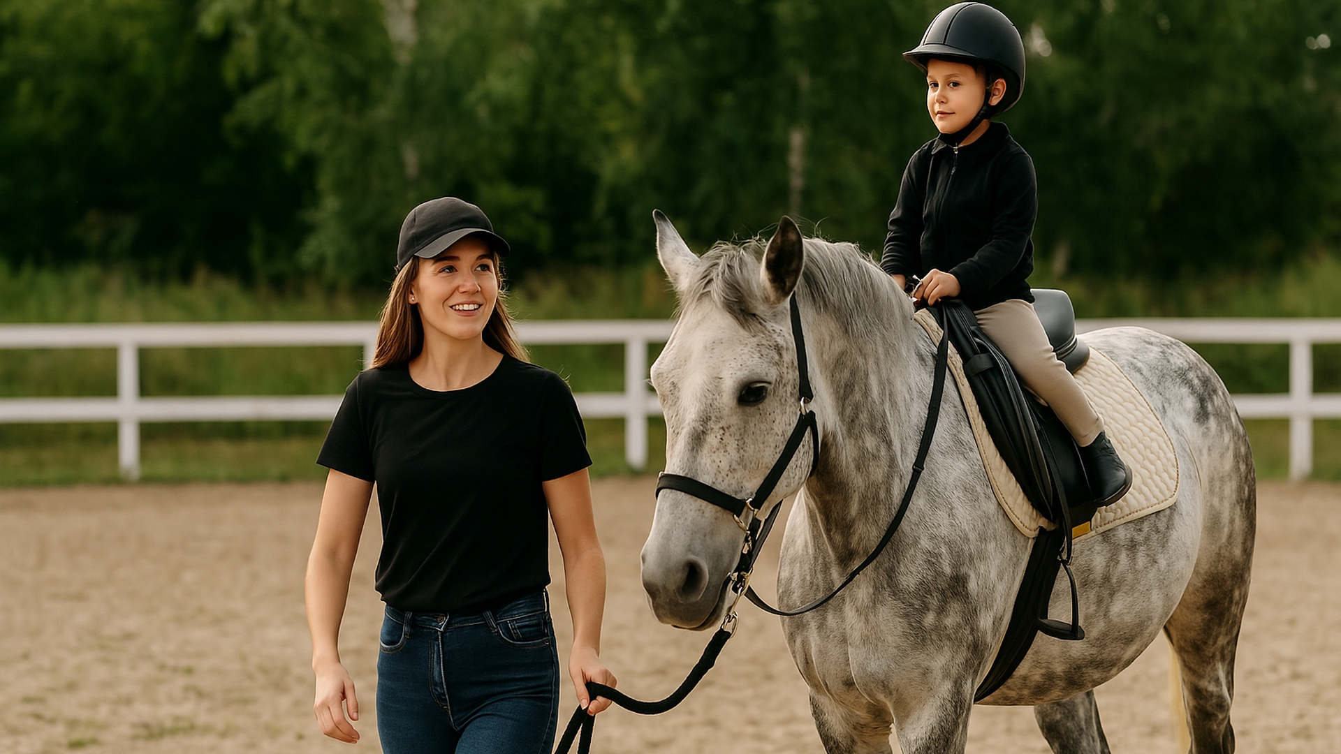 Тренера отличные. На второй тренировке управлят лошадью уже уверенно, спокойно держится в седле. Очень ем нравится. Территория чистая , ухоженная, порядок и уют.